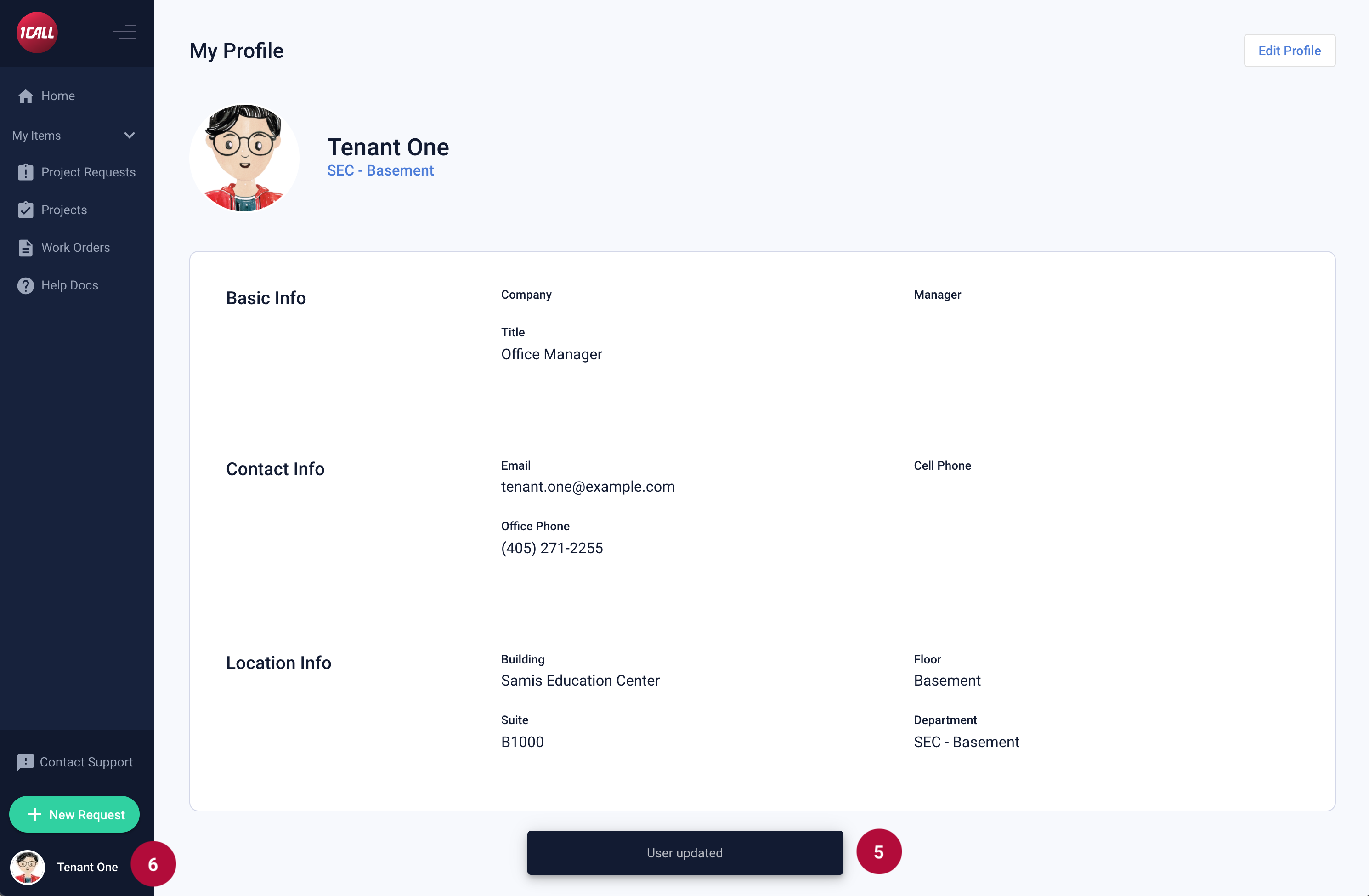 5. You will see a blue snack bar at the bottom of the page that states, “User updated”. 6. Your profile picture, if you uploaded one, will now show next to your name in the left navigation bar. |