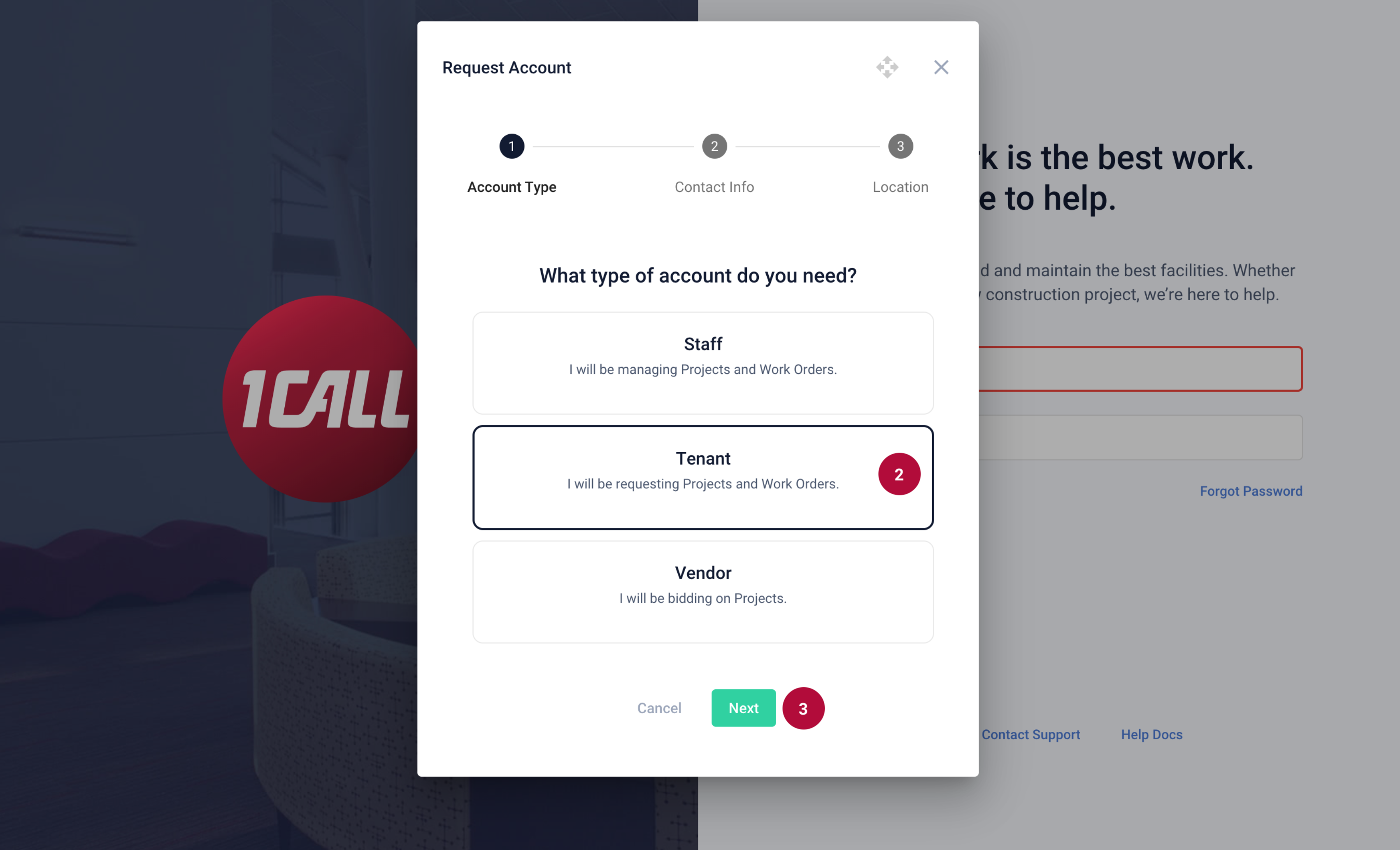 2. Select Tenant 3. Select the Next button |