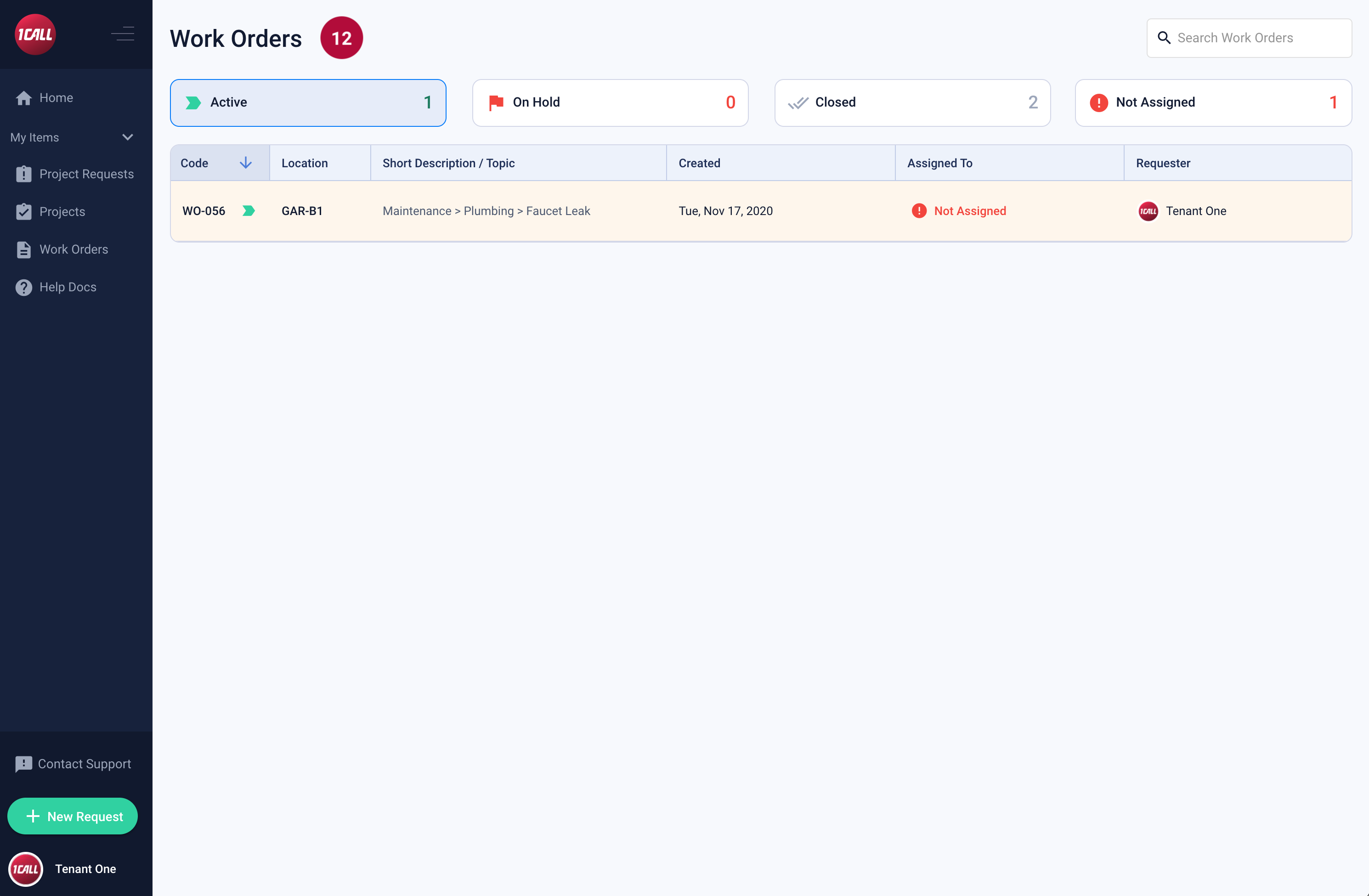 12. Your work order will show up in your Work Orders list and will have a light yellow background which means the request is not currently assigned to a 1CALL team member. |
