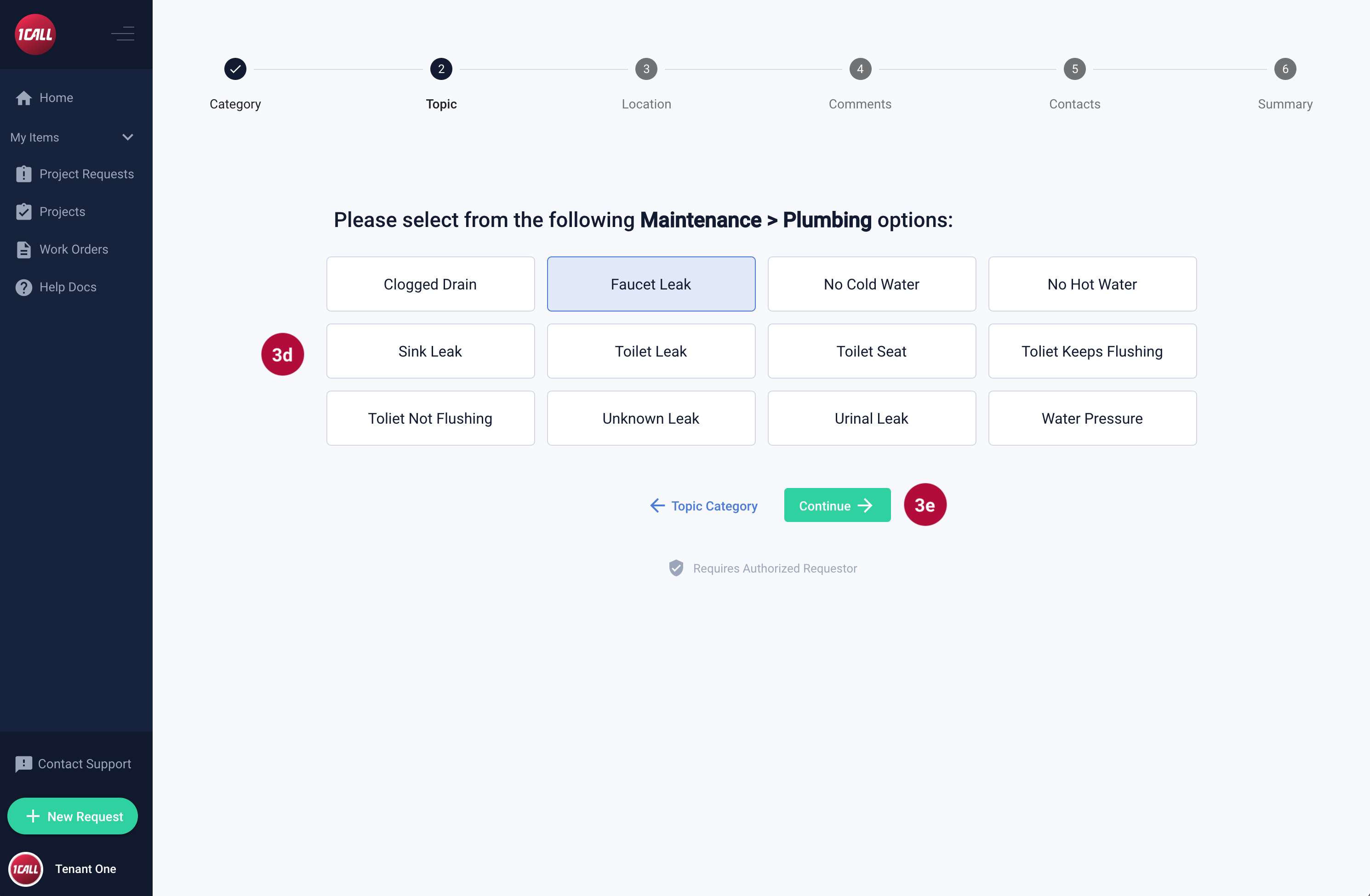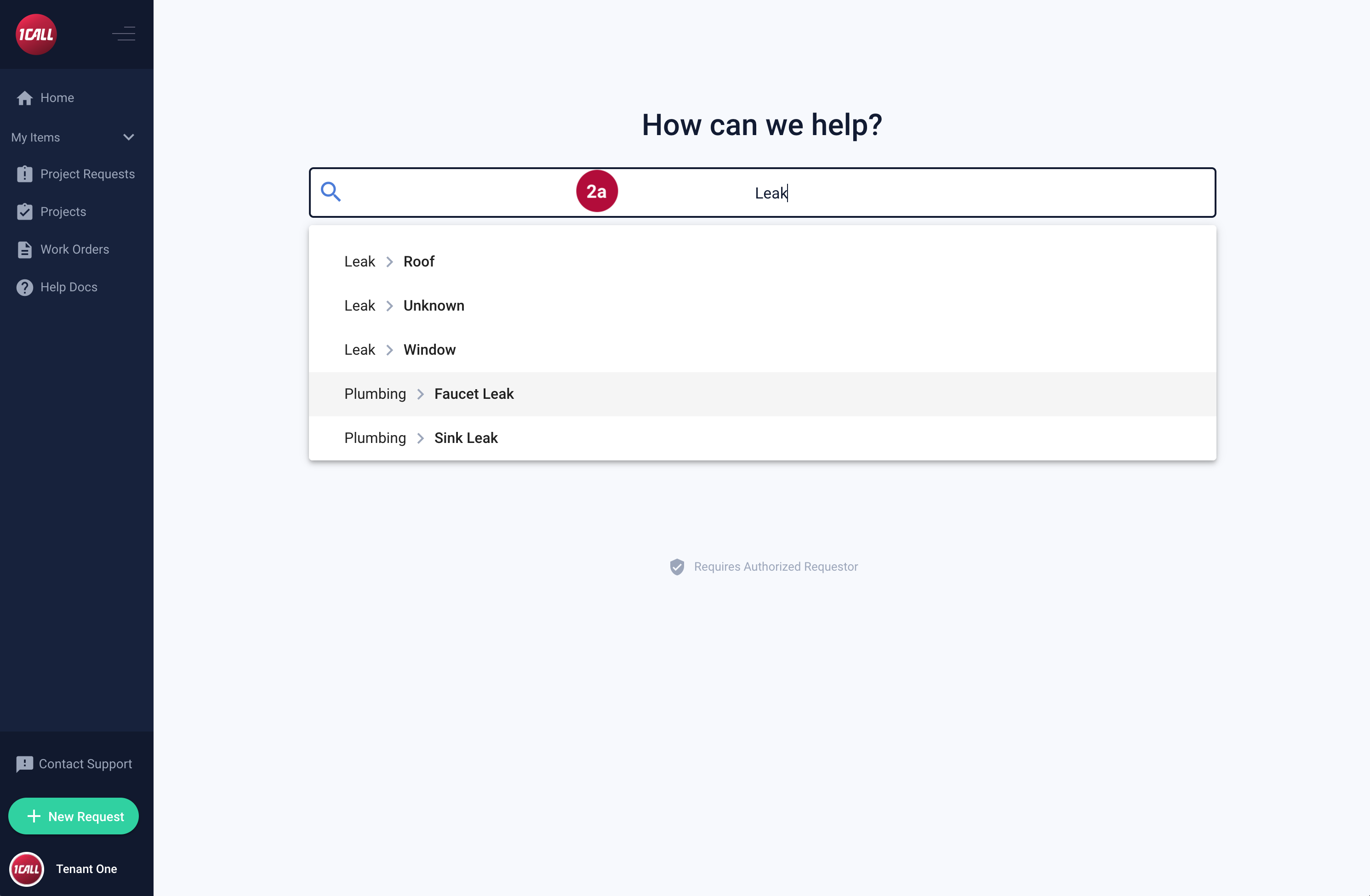 2a. Type a word into the search bar to search our Topic selections and select a topic, then skip to Step 4. For example, in the screenshot to the left, the word Leak as typed in the search bar and there were several topic selections that became visible. |
